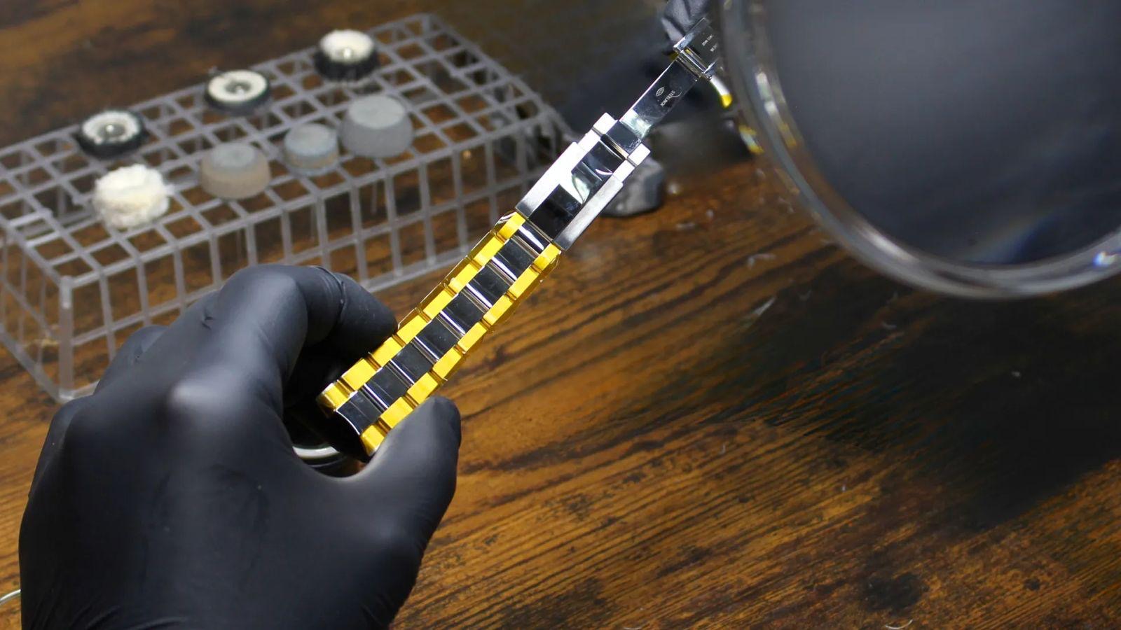 Prinzipiell lässt sich jeder Kratzer in einer Uhr entfernen, wichtig ist hierbei nur die professionelle Herangehensweise. Tiefe Kratzer dürfen nicht einfach nur überschliffen werden, bis diese verschwunden sind, sondern hier muss vorab das gleiche Material aufgelasert werden, damit die Form erhalten bleibt und der Wert deiner Uhr steigt statt fällt durch eine Aufarbeitung. Bei uns wirst du bei tiefen Kratzern daher vorher gefragt damit wir professionell vorgehen können.